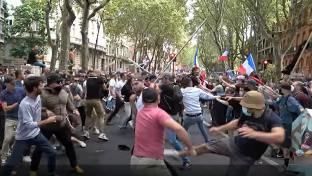 Imaginile reprezinta: 1- bataie intre vaccinisti si antivaccinsisti in Franta si 2 mitingul antivaccinist de la Suceava